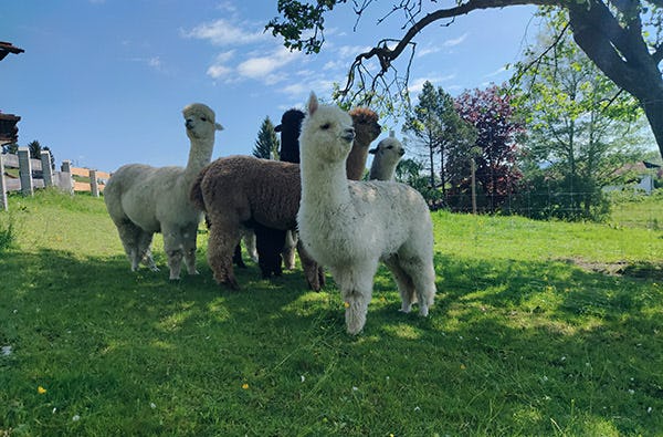 Zu Eurer Trekkingtour der besonderen Art heißt Euch ein Alpakahof im schönen Allgäu am Königswinkel willkommen, umgeben von romantischen Bergen und Tälern, Schlössern und Burgen, glitzernden Seen und grünen Almen. Doch bevor Ihr mit Euren Fellnasen loszieht, um die Landschaften zu erkunden, bekommt Ihr erst einmal Zeit zum Kennenlernen der Tiere. Über 20 Alpakas sind auf den Weiden des Hofes heimisch und warten darauf, mit Euch aufzubrechen und Wald und Wiesen zu erkunden.