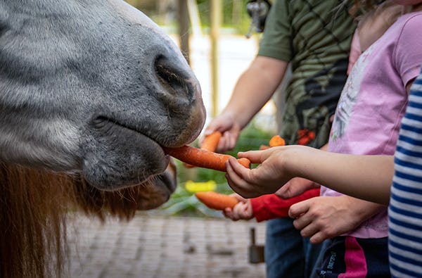 • Füttern und Streicheln der Bauernhoftiere (Pferde, Alpakas, Schweine, Hühner, Hasen und Meerschweinchen - ca. 1 Std.)