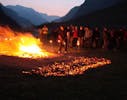 Nach der Vorbereitung wird das Feuer entzündet und der spannende Lauf über glühende Kohlen steht kurz bevor.