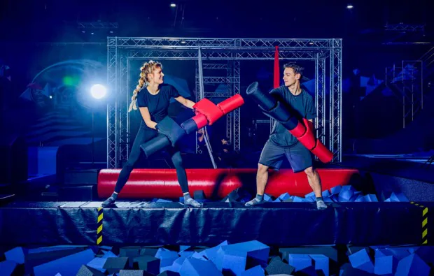 Der Trampolinpark in Düsseldorf bietet alles, was das Herz begehrt. Für viel Action ist hier auf jeden Fall gesorgt! Besiegt Euch gegenseitig mit gezielten Würfen beim Trampolin Airball oder testet Euer Gleichgewicht und Eure Körperbeherrschung auf den Slacklines und rolling barrels im Balance-Park. Verbessert Euer Können im Basketball beim Flying Dunk und schmettert den Ball ins Netz. Beim Ninja Parcour könnt Ihr Euch durch die verschiedenen Hindernisse kämpfen und Euch danach beim Swing Fall durch die Lüfte schwingen und weich im Schaumstoffbecken landen. Versucht Euch an Saltos und anderen Tricks auf der fünfzehn Meter langen Trampolinbahn. Ihr könnt hier all das ausprobieren, worauf Ihr schon immer mal Lust hattet! Wie zum Beispiel einmal eine Wand vertikal hoch zu laufen. Die riesige Trampolinlandschaft garantiert ultimative Sprungerlebnisse, Herausforderungen und außergewöhnliche Höhenflüge. Wann springt Ihr ab?Wie wäre es mit einem herausragenden Tag für Deine Liebsten? Im Trampolinpark in Düsseldorf steht Spaß und Action an erster Stelle. Perfekt für Deine beiden liebsten Springmäuse.