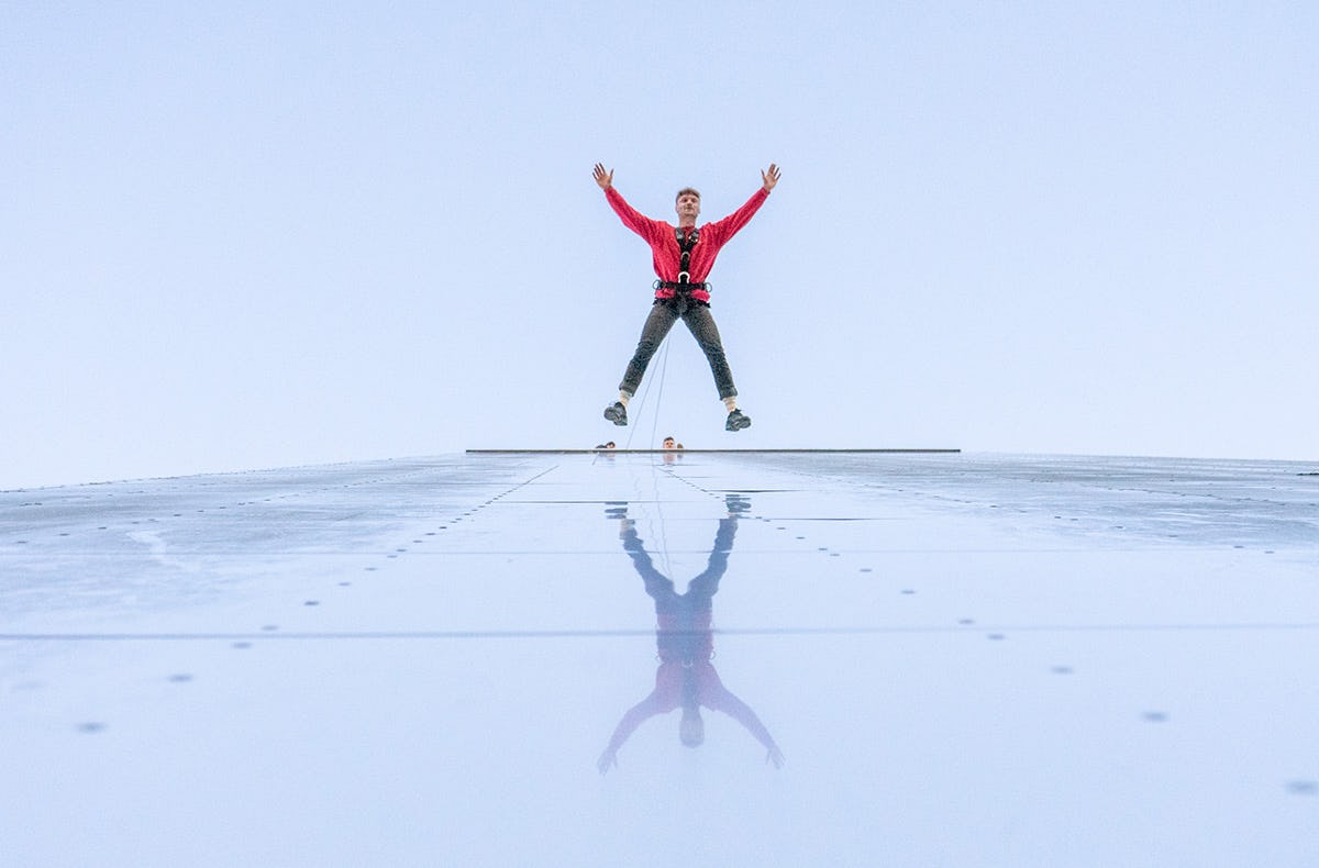 In luftiger Höhe wirst Du zunächst von einem erfahrenen Kletterer in Deine bevorstehende Mutprobe eingeweiht. Aufgeregt? Das solltest Du auch sein, denn der wilde Gang abwärts ist kein Zuckerschlecken und nur für echte Helden geeignet. Festgebunden und abgesichert geht es für Dich ganze 40 Meter in die Tiefe.