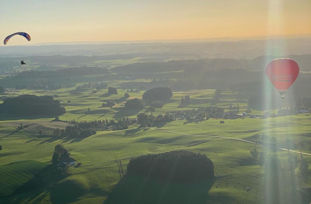 Ein stiller Moment über den Wolken – genau das erwartet Dich bei einer Ballonfahrt über Rückholz. Wenn sich der Ballon langsam hebt, eröffnet sich Dir ein eindrucksvoller Blick auf die weichen Hügel und weiten Felder des Allgäus. Alles unter Dir scheint in wohltuender Ruhe zu versinken, während Du sanft dem Himmel entgegenschwebst. Die frische Höhenluft, das leise Knistern des Ballons und das Gefühl von Leichtigkeit machen diese Fahrt zu einem besonders sinnlichen Erlebnis. Nach der Landung verleiht eine liebevoll gestaltete Ballontaufe dem Tag einen feierlichen Ausklang. Lass Dich tragen – vom Wind, vom Moment, von der Weite. Die Erinnerungen daran tragen Dich noch lange weiter.