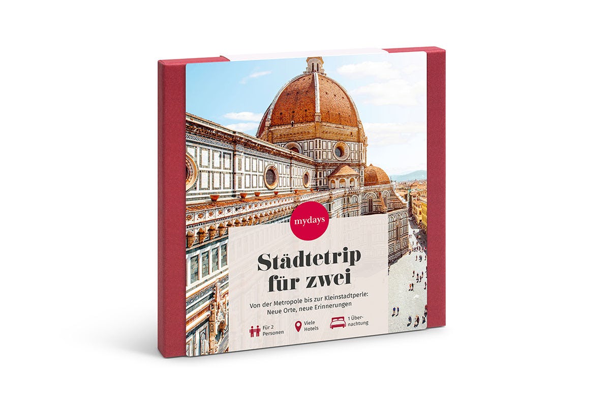 Schenkt Euch gemeinsame Zeit in pulsierenden Städten. Von kulturellen Highlights bis hin zu kulinarischen Entdeckungen – mit dieser Box erlebt Ihr ausgewählte Städte von ihrer schönsten Seite. Genießt einzigartige Momente und schafft gemeinsame Erinnerungen, die Eure Reise eindrucksvoll und besonders machen.
