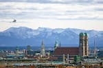 - Abflug der Münchner Skyline mit ihren Sehenswürdigkeiten (Frauenkirche, Marienplatz, Schloss Nymphenburg, Englischer Garten, Olympiapark, Allianz Arena etc.)