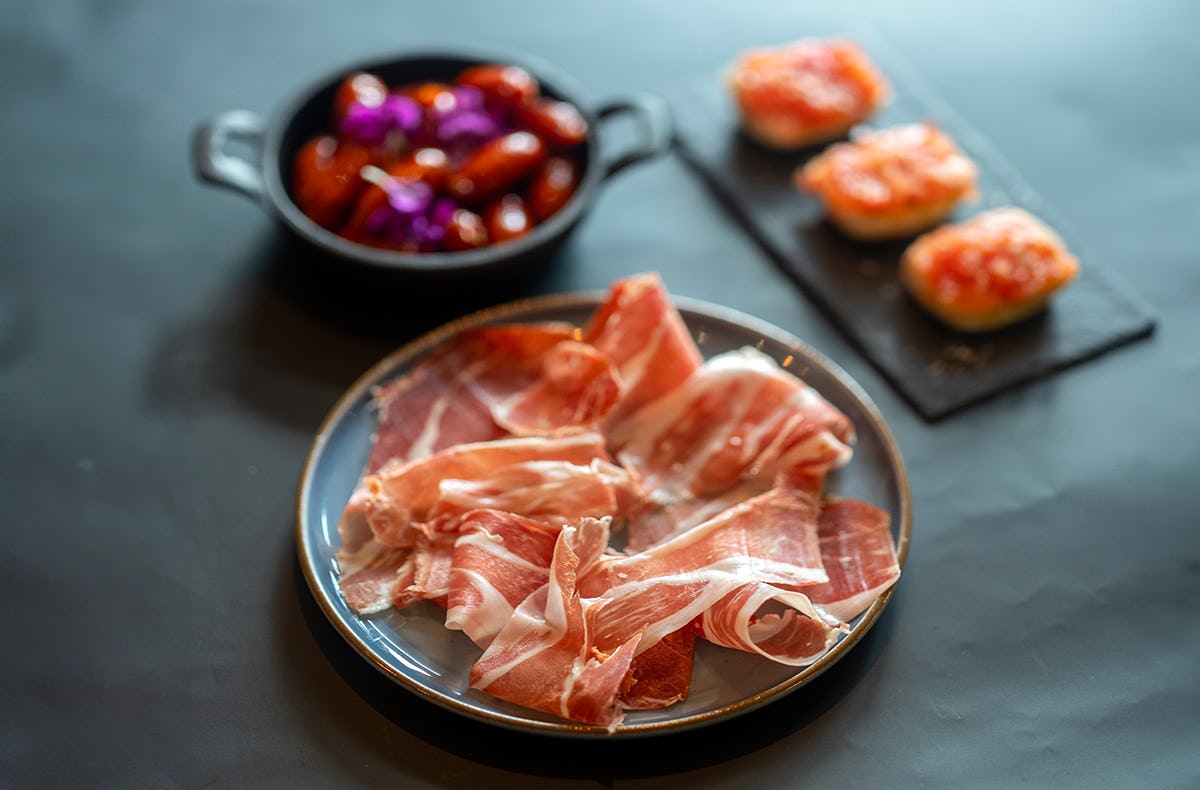 - 3-4 saisonal passende Tapas nach Wahl des Hauses (z.B. Chorizo in Cidre, Tomaten-Avocado-Champignon Tartar)