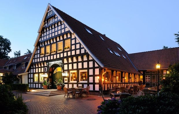Das Burghotel „Vila Vita“ in Dinklage liegt inmitten eines jahrhundertealten Parks mit knorrigen Bäumen und besitzt einen eigenen kleinen Wildpark, der zum Flanieren einlädt. Ihr solltet also unbedingt ein wenig früher zu Eurem Candle-Light-Dinner nach Dinklage fahren und eine Weile durch den Park spazieren. Bereits beim Blick durch die Bäume auf die kleinen Burghäuschen werden Euch romantische Gefühle überkommen. Flaniert Hand in Hand durch die wunderschöne Umgebung oder macht es Euch auf einer Parkbank für eine innige Umarmung gemütlich. Das verliebte Kribbeln im Bauch und die Glücksgefühle, die Ihr in dieser traumhaften Umgebung verspürt, werden Euch den ganzen Abend begleiten!