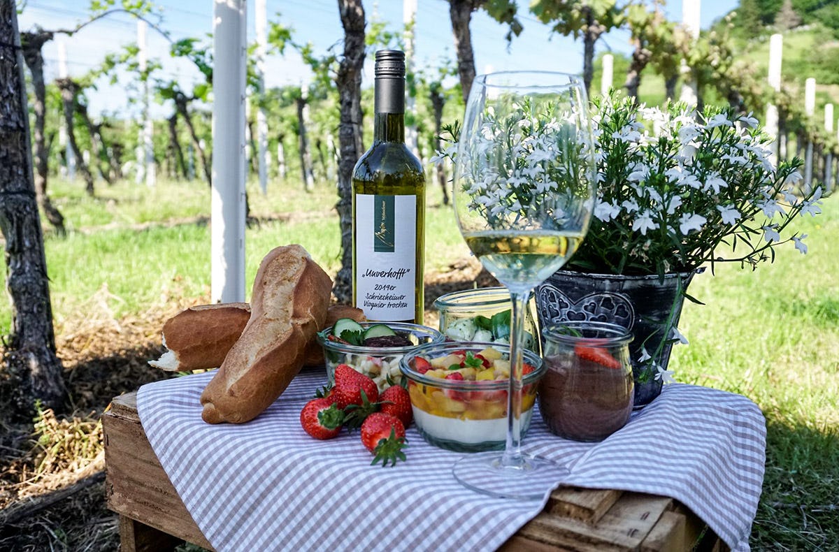 Zum vereinbarten Treffpunkt im Weingut holt Ihr Euch den speziell für Euch zusammen gestellten Picknickkorb ab. Von dort aus geht es raus in die Weinberge und Eure Vorfreude auf einen unvergesslichen Nachmittag steigt bereits. Beim gemeinsamen Schlendern durch die Weinberge in entspannter Atmosphäre genießt Ihr die Sonnenstrahlen im Gesicht und schwelgt dabei in verträumten Gedanken. Auf der romantischen Picknickwiese erwarten Euch schließlich kleine Köstlichkeiten für Zwei. Schriesheim, von seinen Bewohnern auch liebevoll „Schriese“ genannt, steht auch für besonders edle Weine und so darf natürlich auch ein guter Tropfen beim Picknick für Zwei nicht fehlen.