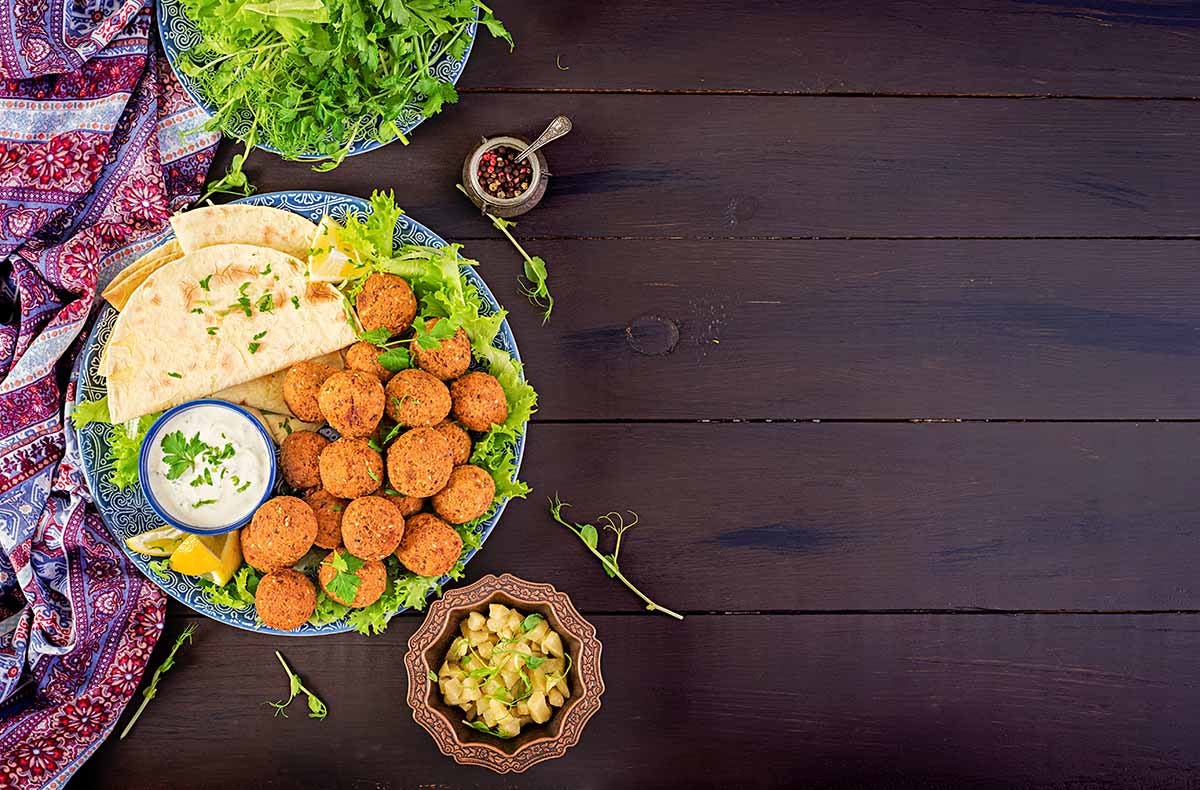 - Zubereitung von: Mezze-Trio aus Hummus, Baba Ghanoush & Muhammara mit frischem Fladenbrot, Falafel-Bällchen mit Minz, Joghurt und Granatapfelkernen, Lammkarree mit orientalischer, Chermoula und geschmortem Gemüse, Baklava mit Nüssen & Honig