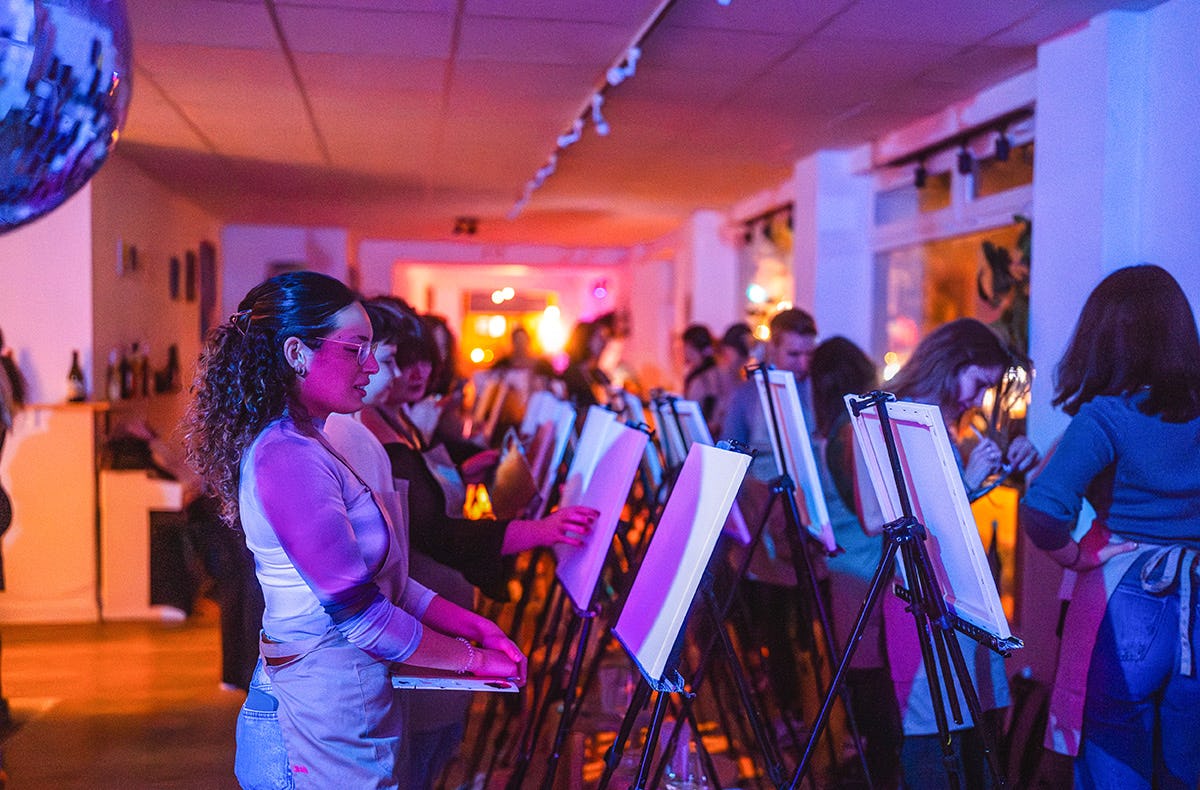 Zwischen schimmernden Farben und mitreißenden Klängen taucht Ihr in eine unvergessliche Atmosphäre ein. Am Ende des Abends könnt Ihr Euer Meisterwerk vorstellen und mit nach Hause nehmen – als bleibende Erinnerung an ein Event, das Kunst, Musik und Genuss perfekt vereint.