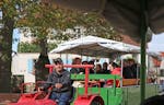 Bei einer lustigen Weinprobe nach einer fröhlichen, Überlandfahrt entlang der Weinberge zur Weinbergshütte mit dem charmanten Jungwinzer Martin an Bord, lernst Du alle Raffinessen zum Thema Wein, Frankenland und Leute kennen. Die amüsante Fahrt im Planwagen und mit dem Trecker durch die Zeilitzheimer Weinberge ist ein panoramareiches Erlebnis. Martin zeigt Dir ganz besondere Orte seiner Heimat.