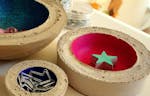 Nun geht es ans Eingemachte: Gieße Deine ganz individuellen Formen aus Beton! Egal ob Kerzenhalter, Schalen, Blumentöpfe, Briefbeschwerer, ... – Du kannst Deine Objekte nach Herzenslust gestalten, denn im Atelier wartet eine große Auswahl an Formen und Zusatzmaterialien auf Dich. Lass Deiner Kreativität freien Lauf! Verpasse zum Beispiel Deinen Objekten mit Farbe und Lack den letzten Schliff. Auch kannst Du Deine Werke veredeln, indem Du Schlagmetall in den Beton gießt oder gleich aus „schick“ mit Metallösen oder Fotohalter-Klemmen „praktisch“ machst. Deiner Fantasie sind hier keine Grenzen gesetzt!