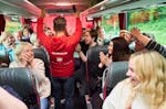- ComedyShow nach festem Drehbuch, Bus mit besonderen Ausstattungen (Roter Teppich, Roter Vorhang, Theatersound), Bildeinspieler via Busmonitor