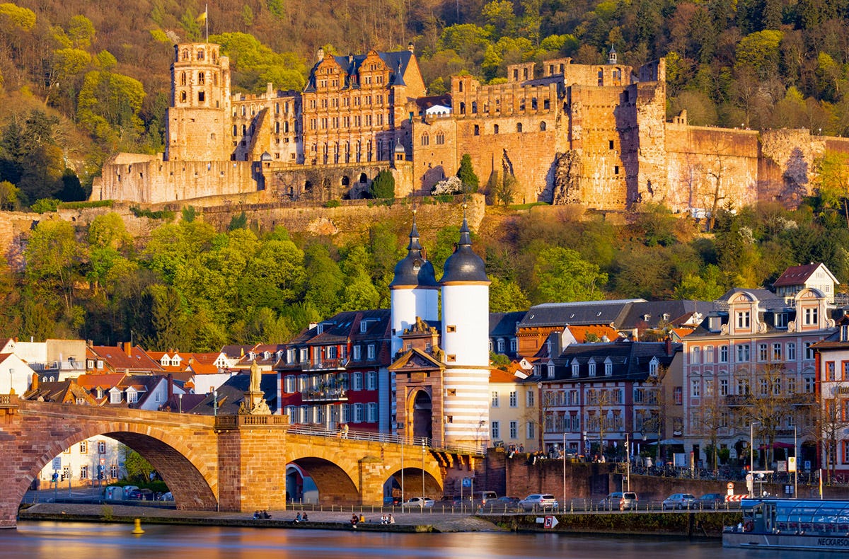 - Fotospaziergang zur Sonnenuntergangszeit mit Ausblicken auf die Heidelberger Altstadt mit Schloss, Alter Brücke und Neckar