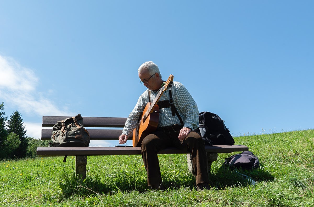 - Gitarrenbegleitung und Begleitung mit urigen Rhythmusinstrumenten