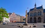 Während Eurer Tour kommt Ihr an prägnanten Sehenswürdigkeiten, wie zum Beispiel dem Fischmarkt vorbei. Er gilt als sehr zentraler Platz in der Stadt, denn dort steht das Rathaus. Weitere Stationen sind die Krämerbrücke, die Kaufmannskirche oder auch das Stadtmuseum. Lasst Euch durch die Hinweise an den Stationen leiten. Ihr seht an diesem Tag nicht nur Erfurts schönste Ecken, sondern erfahrt auch einiges über die Geschichte und Architektur der mittelalterlichen Stadt.