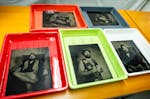 - Zutritt zur Dunkelkammer, um das Bild auf der Platte erscheinen zu sehen