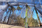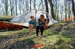 Diese Kombination aus Hängematte und Zelt wird Euch begeistern! Straff gespannt über dem Boden bietet Eure Unterkunft höchsten Schlafkomfort und schützt Euch zusätzlich vor der Bodenfeuchtigkeit. Durch die reißfesten Moskitonetze seid Ihr außerdem vor sämtlichen Krabbeltieren sicher! Auf Euch wartet eine ruhige Nacht inmitten der friedlichen Umgebung des Waldes. Entscheidet Ihr Euch für ein Baumzelt ohne Sichtschutz, habt Ihr direkten Blick in den Sternenhimmel – wie romantisch!Die Umgebung
