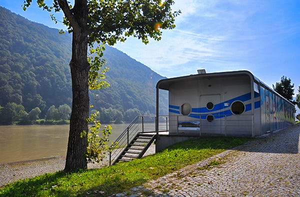 Mitten in diesem Idyll findet sich auch Eure Urlaubsunterkunft, die Euch zwei rundherum besondere Nächte bescheren wird: der DONAU(T)RAUM AHOI. Bei diesem exklusiven Feriendomizil handelt es sich um eine Art Tiny-House, also ein Miniatur-Häuschen, das jedoch hochmodern gestaltet und absolut zeitgemäß eingerichtet ist. Ein offener Grundriss, trendstarkes Interieur und eine umfassende Ausstattung bieten Euch auf kleinem Raum alles, was Ihr für rundum sorglose Tage benötigt: von Wasserkocher, Minibar und Kaffeemaschine über gemütliche Betten und Sitzgelegenheiten bis hin zu Fernseher, Büchern und Minigalerie. Das besondere Highlight des DONAU(T)RAUMS AHOI ist jedoch seine exquisite Lage unmittelbar am Ufer und direkt am Donauradweg. Wenn Ihr selbst Eure Räder mitgebracht habt, finden auch diese in Eurem Häuschen einen Unterschlupf. Hier genießt Ihr die Abende in bequemen Liegestühlen, blickt aufs Wasser und seht die Dampfer vorüberziehen – und am Morgen wacht Ihr mit Donaublick auf. Das Frühstück genießt Ihr im Romantikhaus Hufschmiede auf dem angeschlossenen Campingplatz. Für Abwechslung auf Eurem Kurztrip nach Engelhartszell sorgt die Gästecard Donauregion, die Eurem Reisepaket beiliegt. Hiermit erhaltet Ihr kostenfreien Eintritt in das Wassererlebnis Mini-Donau, in das Campingplatz-Freibad sowie in das sehenswerte Haus am Strom, ein Umwelt-Erlebnis-Haus, in dem man die Kooperation von Mensch und Natur live erleben kann – ein beeindruckendes Erlebnis.