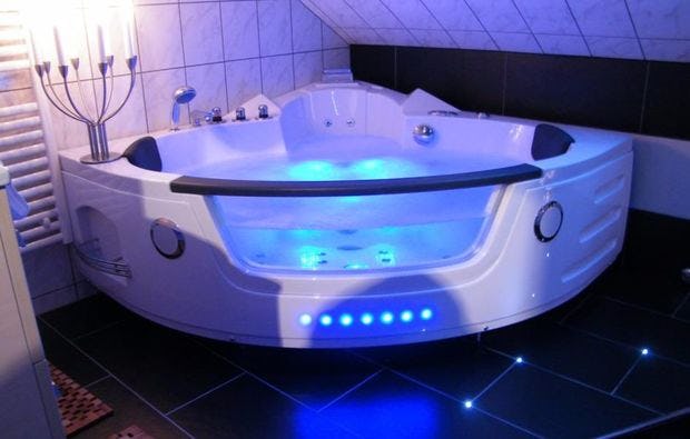 Im Rahmen Eures Romantikwochenendes in Orlenbach kommt Ihr außerdem in den Genuss eines ganz besonderen Treatments: Bei Eurer Ankunft ist die ganze Wohnung dem Anlass entsprechend liebevoll mit Rosenblättern und Rosensträußen dekoriert. Im Innenwhirlpool ist bereits Wasser eingelassen, ringsum zieren Teelichter und Kerzen das Ambiente und begrenzen dezent den Weg zum großen Kingsize Bett. Eine Flasche Sekt steht im Eiseimer und wartet darauf geköpft zu werden, während ein köstlicher Kuchen von Coppenrath und Wiese den kleinen Hunger zwischendurch stillt. Kurz gesagt: Bessere Bedingungen für eine wundervolle Zeit zu zweit könntet Ihr kaum haben!