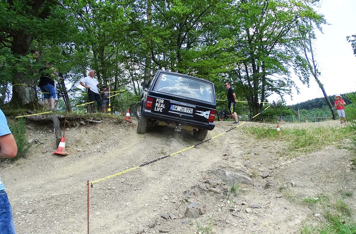 - Gefahren wird mit einem Geländewagen Jeep Cherokee XJ