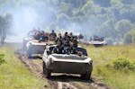 Dann macht ihr euch auf, um die einzelnen Fahrzeuge zu besichtigen. Für Dich wird heute ein Schützenpanzer BMP-1 ausgewählt, in dem Du als Passagier mitfahren darfst. Und dann geht´s auch schon los.