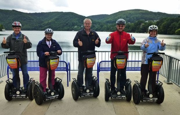 Deine anfangs relativ flache und gemütliche Tour mit einem Segway PT führt Dich von Düren über Kreuzau, Üdingen, Winden und Schlagstein entlang des wunderschönen Rurufer-Radweges. Kurz vor der Staumauer des Stausees Obermaubach haben wir eine Strecke mit einer ordentlichen Steigung. Diese wirst du mühelos bewältigen. Einfach nur nach vorne lehnen. Am Stausee machen wir einen Fotostopp und eine 30-minütige Pause in einem der Cafés, bevor es wieder auf dem Segway PT in Richtung Startpunkt geht.