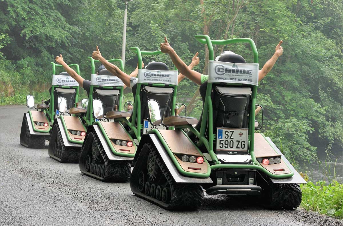 Mitten im sanften Grün des Harzes wartet bei CRUDE Offroad in Stiege eine besondere Begegnung mit der Natur auf Dich: Bei der Ziesel Tour fährst Du mit dem innovativen Ziesel Street 4.0 durch die stille, weitläufige Landschaft. Während die Räder über schmale Waldpfade gleiten, spürst Du die ruhige Kraft des elektrischen Fahrzeugs und nimmst die Umgebung intensiver wahr als je zuvor. Die klare Luft, das Lichtspiel zwischen den Bäumen und das betonte Tempo eröffnen Dir eine neue Form der Gelassenheit. Beim Ziesel fahren schenkst Du Dir eine Auszeit, die tief nachwirkt. Wenn Du Deine eigene kleine Harzreise beginnen möchtest, wartet Stiege bereits auf Dich.