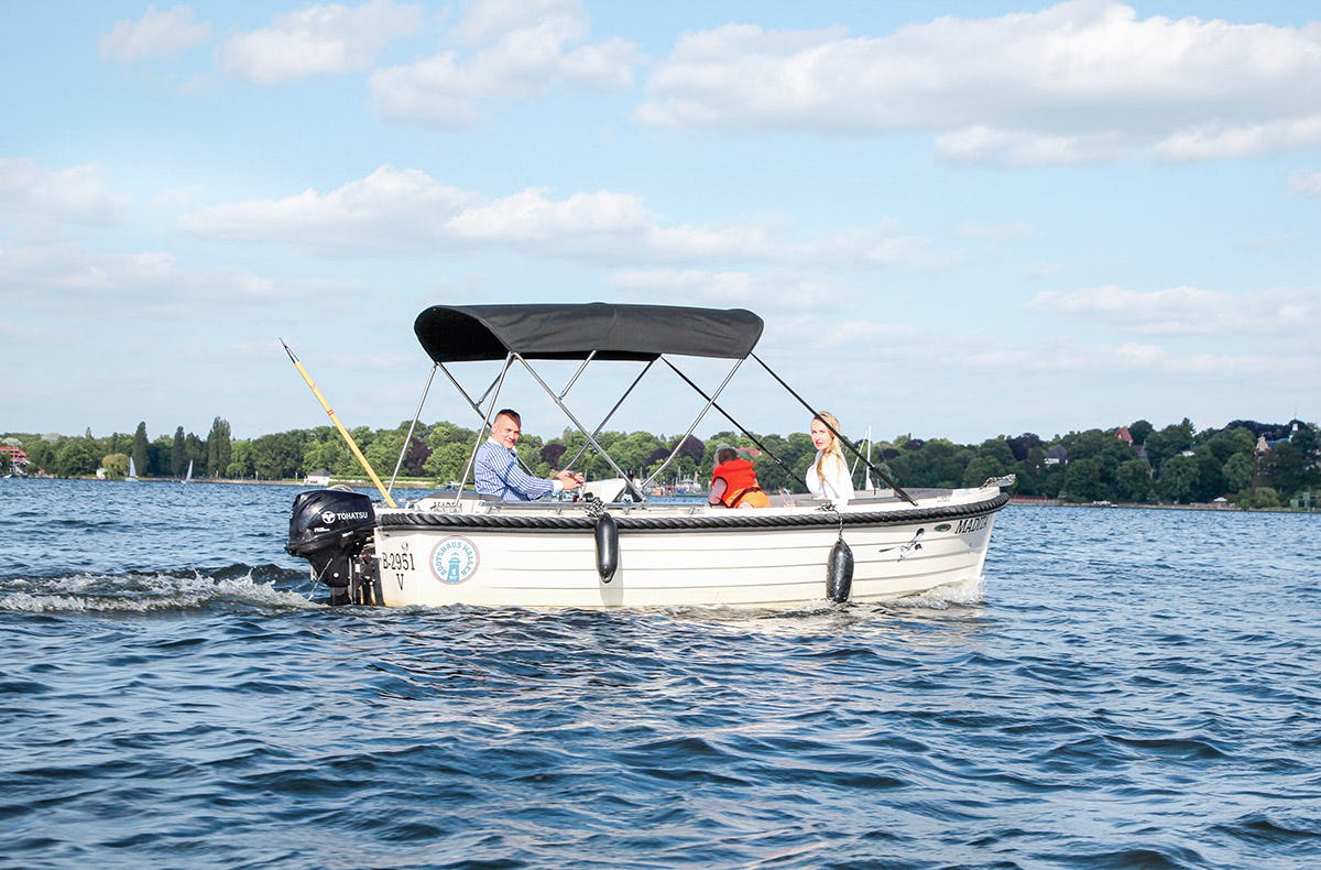 Ob mit der Familie oder mit Freunden – Motorboot fahren auf dem Wannsee ist das perfekte Erlebnis für einen Sonntagsausflug. Nach einer kurzen Einführung geht es auch schon aufs Wasser. Gemütlich lenkt Ihr das Boot über den See, während Ihr mit der Sonne um die Wette strahlt. Das Wasser um Euch herum glitzert vom einfallenden Licht und türmt sich zu kleinen Wellen. Angenehm weht Euch der Fahrtwind um die Nase.Pack die Badehose ein und nischt wie raus nach Wannsee