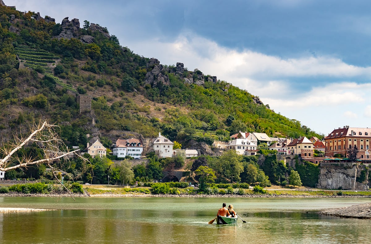 Während das Kajak lautlos über das Wasser gleitet, zieht eine malerische Kulisse vorbei. Links und rechts wechseln sich grüne Ufer, Schotterbänke und kleine Inseln ab – ideale Plätze für eine Pause. Gelegentlich zeigen sich Biber in ihrem natürlichen Lebensraum. Der Blick auf die Altstadt von Dürnstein bildet ein weiteres Highlight, bevor es Richtung Rossatz mit seinem herrlichen Sandstrand weitergeht. Diese gemeinsame Zeit auf dem Wasser bleibt in Erinnerung.