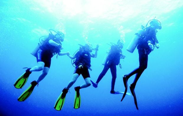 Erlebe bei dem Spezial Tauchkurs Tieftauchen in München den Rausch der Tiefe und ein unvergessliches Abenteuer, ohne einen echten Tiefenrausch zu bekommen.